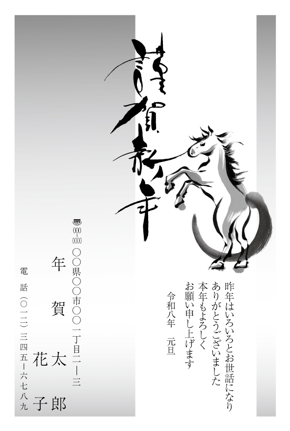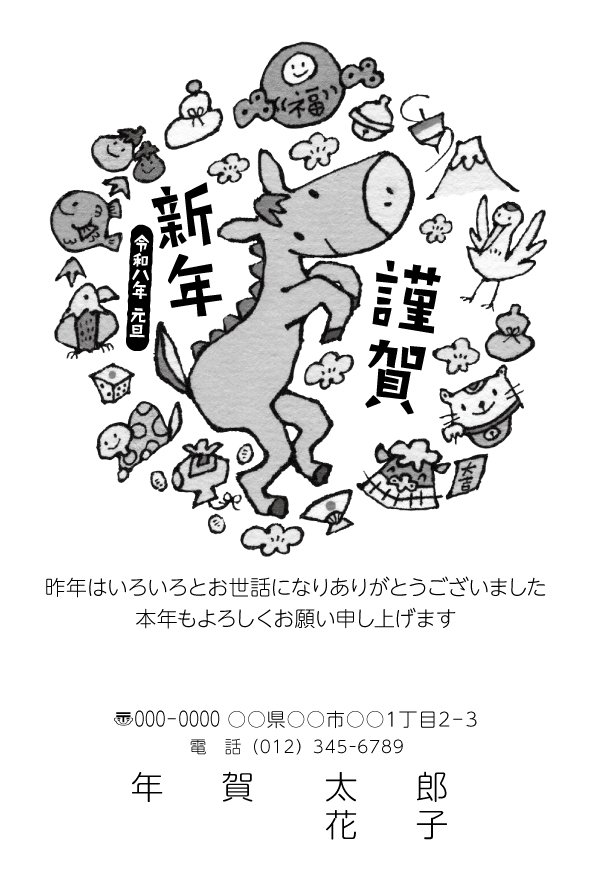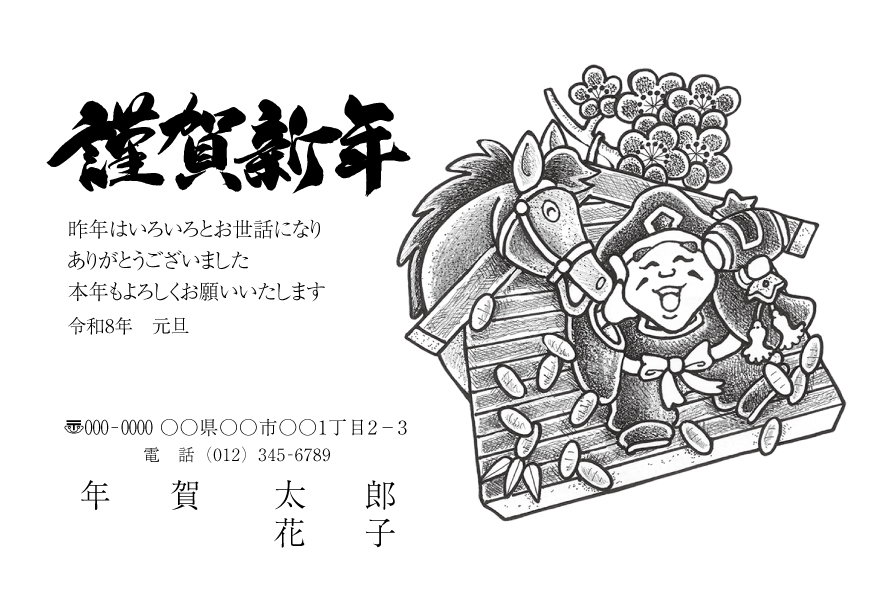データ制作には、絶対の自信を持っており、差出人名部分の文字レイアウトについても文字バランスをきちんと整えたプロ仕上げの年賀状をお届けいたします。